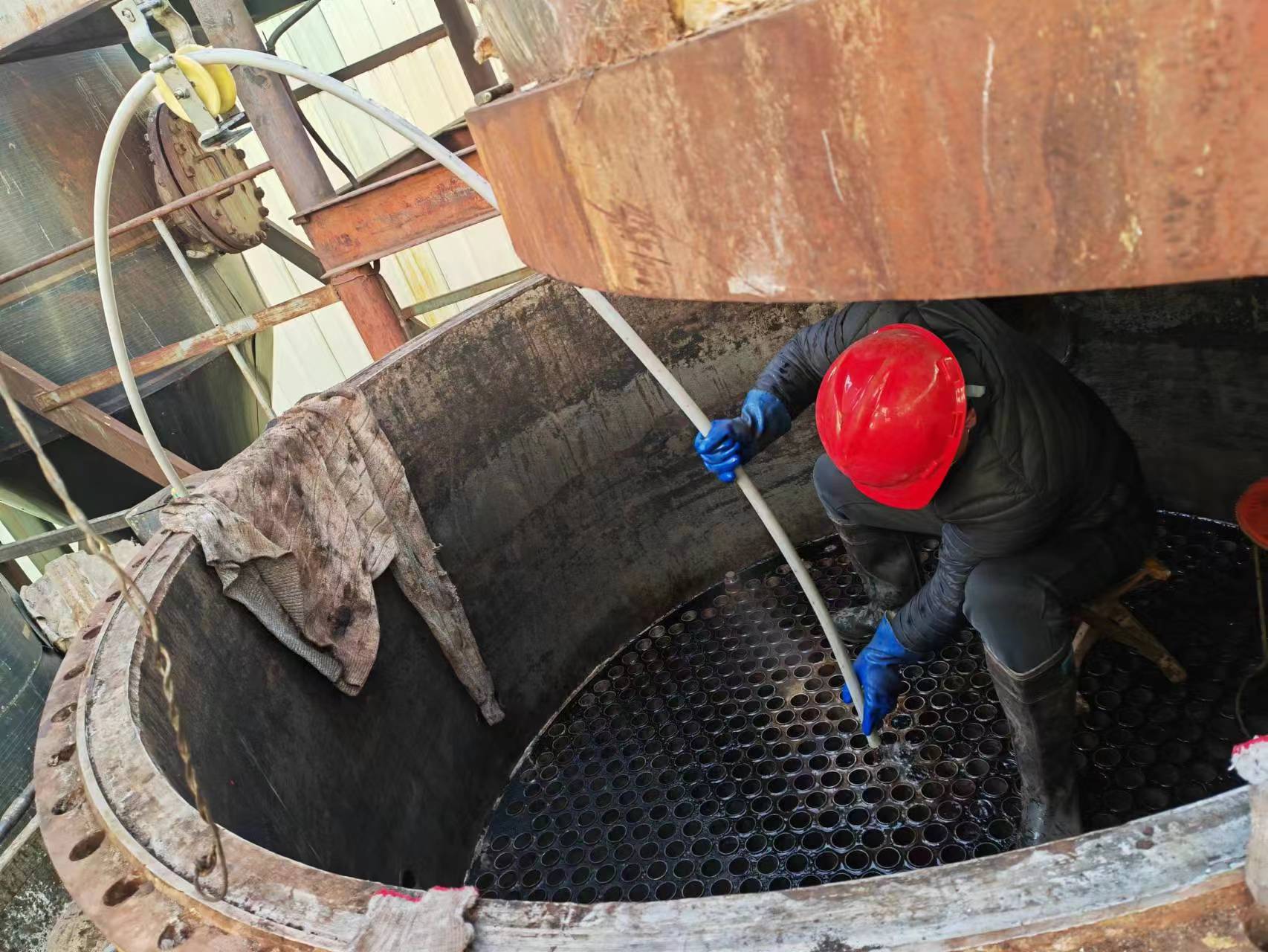 2024年1月22日在河北省石家莊市無極縣順達化工有限責任公司王云龍,王彥福等幾位老板的共同探討,共同努力和指導下,與我方:河南都市機械設(shè)備有限公司技術(shù)專員喬俊陽,科技開發(fā)領(lǐng)導人祝金善緊密配合,共同研究探討清洗使用GQ~600型智能清洗機的使用方法,如何鉆的更快更方便好用,如何節(jié)省時間,提高效益,做了深刻的研究,針對一臺600平方的廢水蒸發(fā)器,1100根管子,管子內(nèi)徑40mmX長度5m.上面基本上沒有堵死,下面80%徹底堵死的管道,使用直徑37mmX12mm六刃代尖YC8合金鋼鉆頭進行了疏通清洗,從早上8點半開始,中午休息1個小時,到下午4點22分徹底疏通清洗完畢。只用了一根軟軸,一個鉆頭,鉆頭和軟軸基本上沒有什么磨損,感覺只要機器放穩(wěn),軟軸放順勁,不缺水不缺電還是很好用的,歡迎各位業(yè)內(nèi)人士,多多關(guān)注點贊評論收藏分享指導合作!