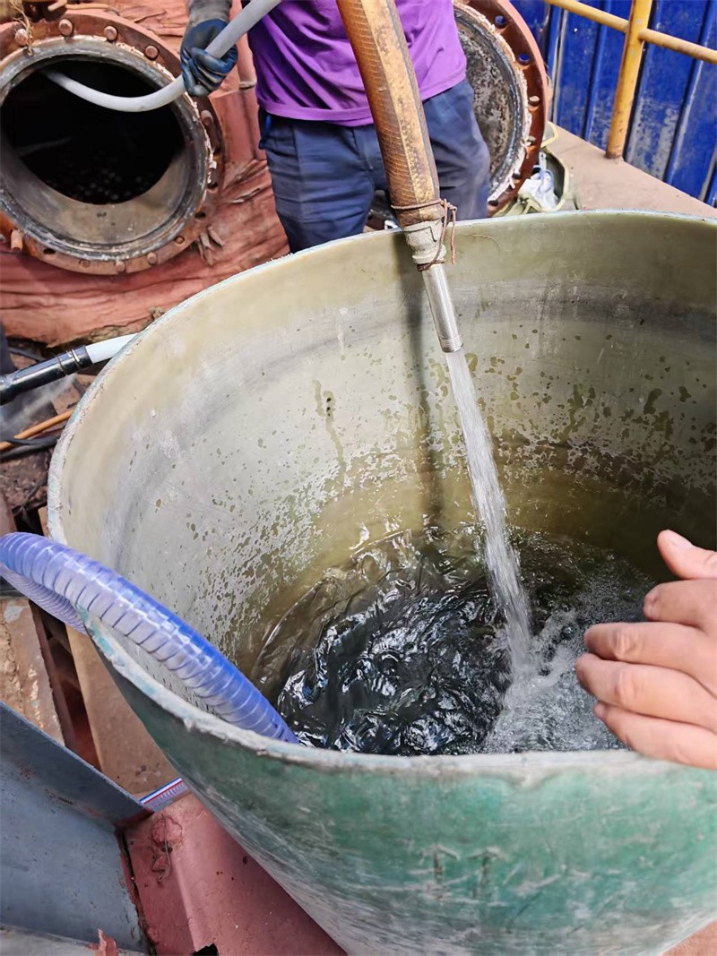 2025年6月6日、迎著37℃高溫,晴空萬里,找不到?jīng)隹斓牡胤?,河南省安陽縣永和鎮(zhèn)北街村糠醛廠,河南省多溢利生物科技有限公司總經(jīng)理葉亦林委派彭美燕生產(chǎn)廠長總工程師與河南都市機械設備有限公司喬俊陽主任,王永勝技術員,聯(lián)合研制開發(fā)了廢水蒸發(fā)器多管徑式內(nèi)徑28-32-34mm廢水蒸發(fā)器鍋爐清洗機鍋爐管道疏通機通管機,管道管子直徑38-36-32mmX5m,經(jīng)過多次現(xiàn)場試驗,使用直徑20mmX13mmX10m軟軸及直徑25mmX16mmX10m+5米軟軸,配直徑25-26-30-31-32-33合金鋼鉆頭,不斷的調(diào)換軟軸及鉆頭鉆的快,簡單方便,輕松的解決了管道內(nèi)結垢堅硬,堵死管道無法解決難題!
